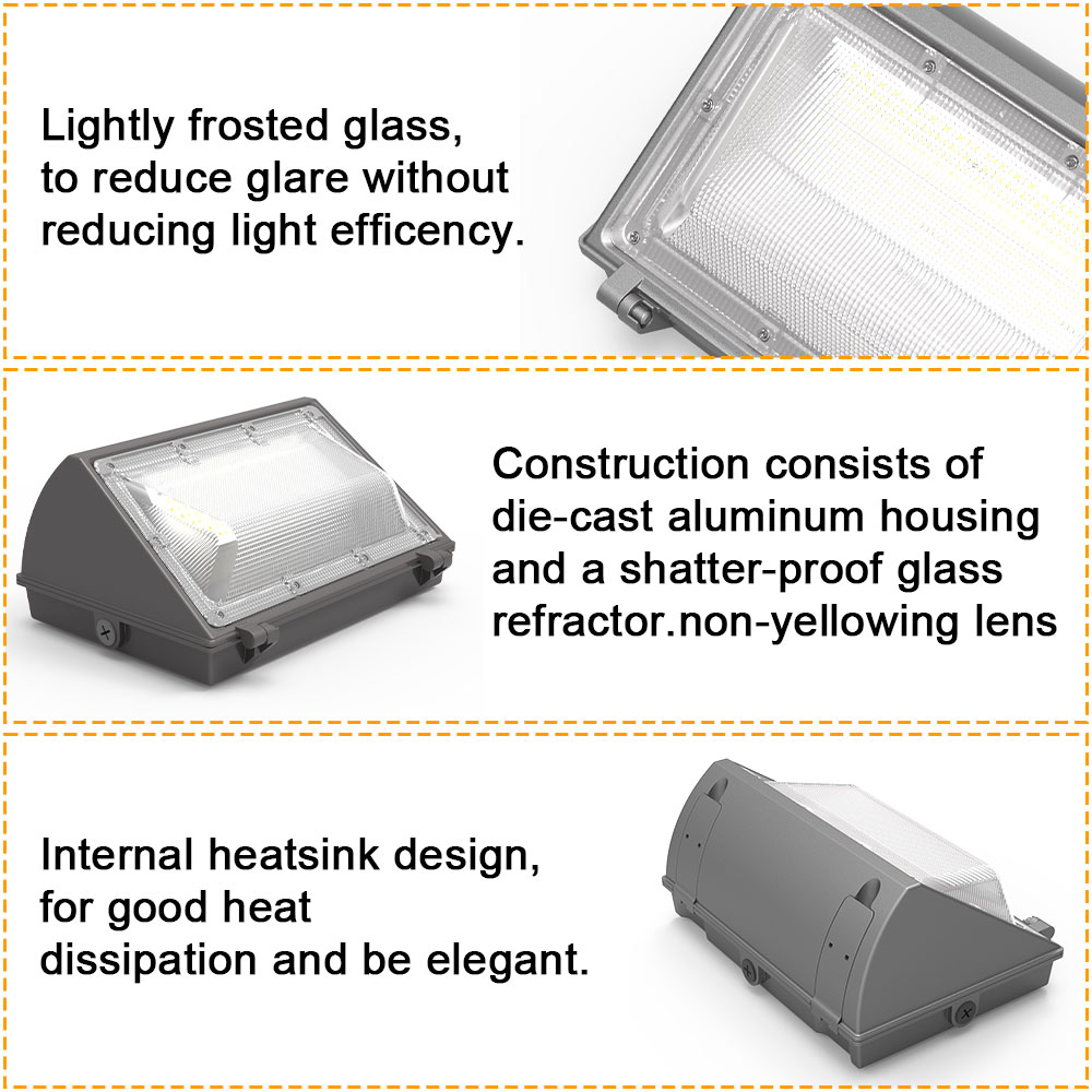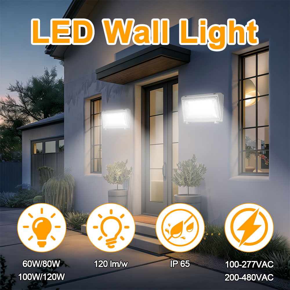 125W LED Wallpack Light Fixture, 350W MH/HPS replacement, upgrade existing wall packs with ease, sealed die-casting profile for out applications. universal voltage AC120-277v 50/60Hz, using high quality 2835 chips, UL driver, dust-proof & IP65 waterproof.