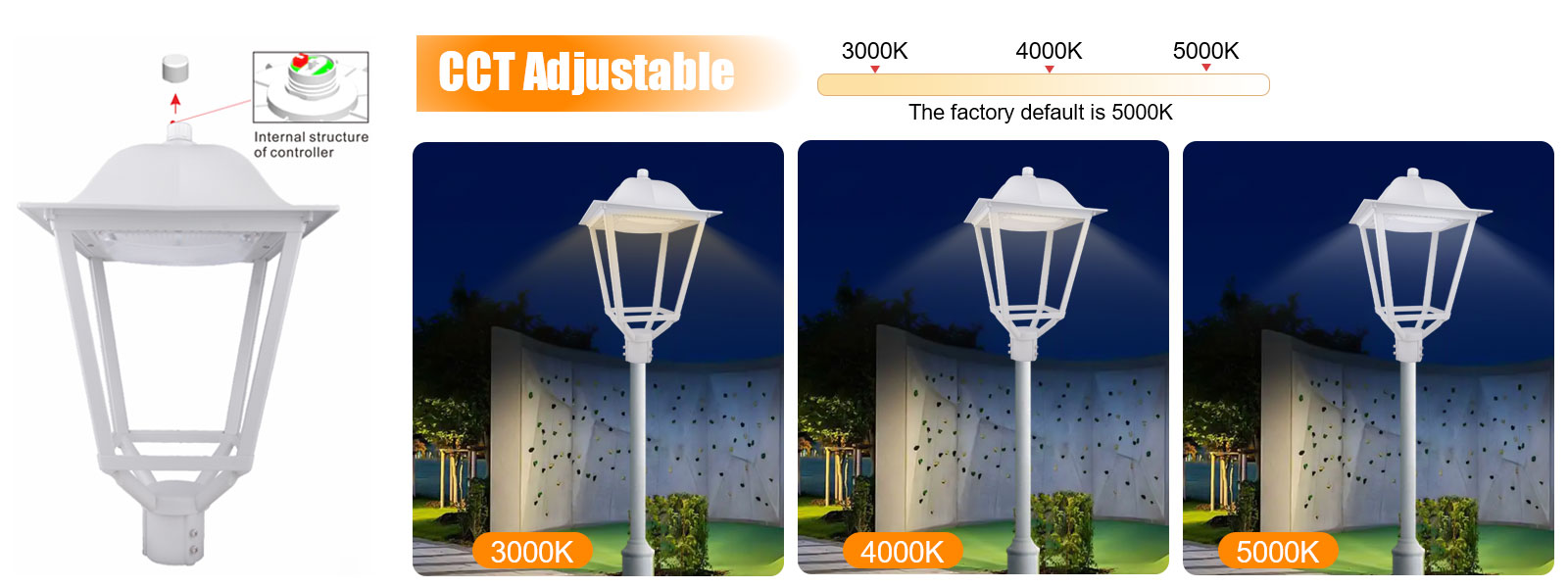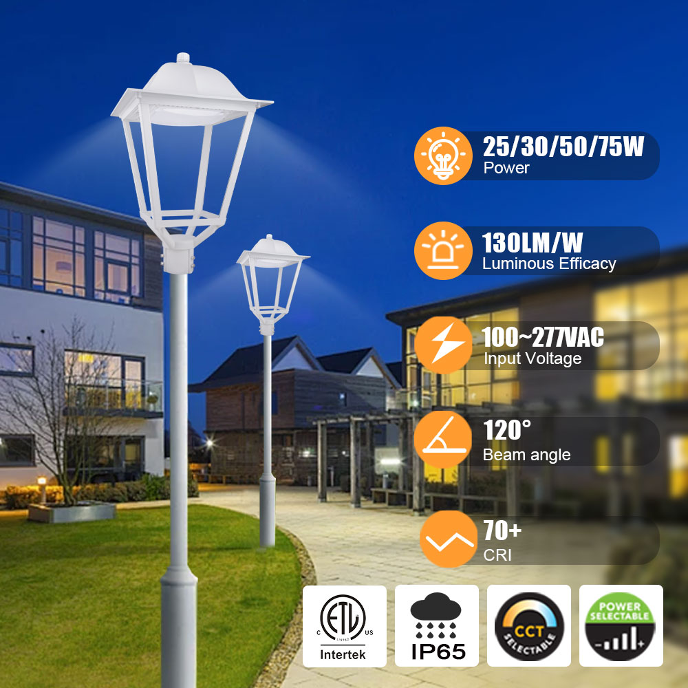 What are the advantages of 50W Post Top Garden Lights 100-277VAC 3000K 4000K 5000K with White Shape?