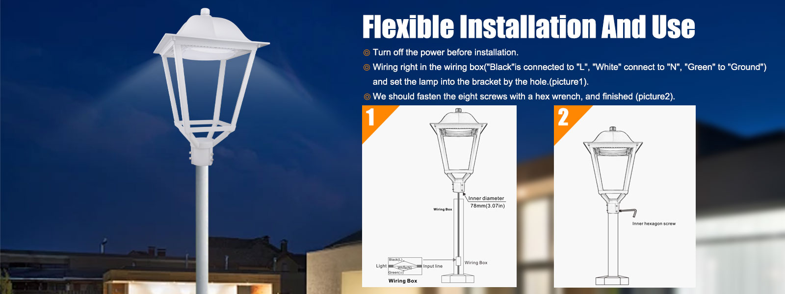 Application range: Suitable for commercial or industrial lighting, such as small roads, streets, front yards, urban highways, main roads, country roads, factories, playgrounds, schools, gardens, courtyards, parking lots, parks, sidewalks, exteriors, driveways, Shops, farmyards or any other commercial and industrial areas.