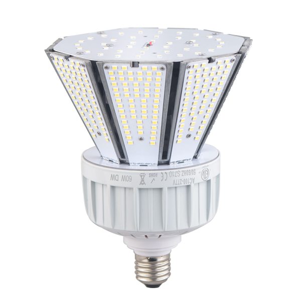 Commercial 60 Watt LED Cone Bulb 5000K 7200LM is designed to replace existing 200 Watt Metal Halide and High Pressure Sodium lamps for Outdoor LED Garden Street Post,replace parking garage canopy fixtures and post top light retrofit,retrofitting traditional pole lighting with LED Post Top lamps