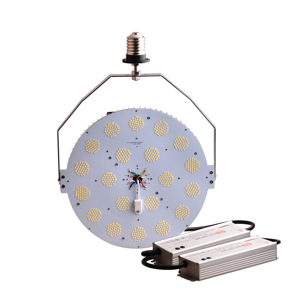 60W DLC LED Retrofit Kits Meanwell driver, 7800lm, 150W metal halide replacement, E39 mogul LED retrofit kit. Easily Retrofit LED Light Fixtures, A true replacement for general lighting applications. Patented E39 (Mogul Base) Screw-in LED Retrofit for customers. Specially designed for indoor and outdoor lighting. This kit can retrofit all the conventional lighting fixtures.