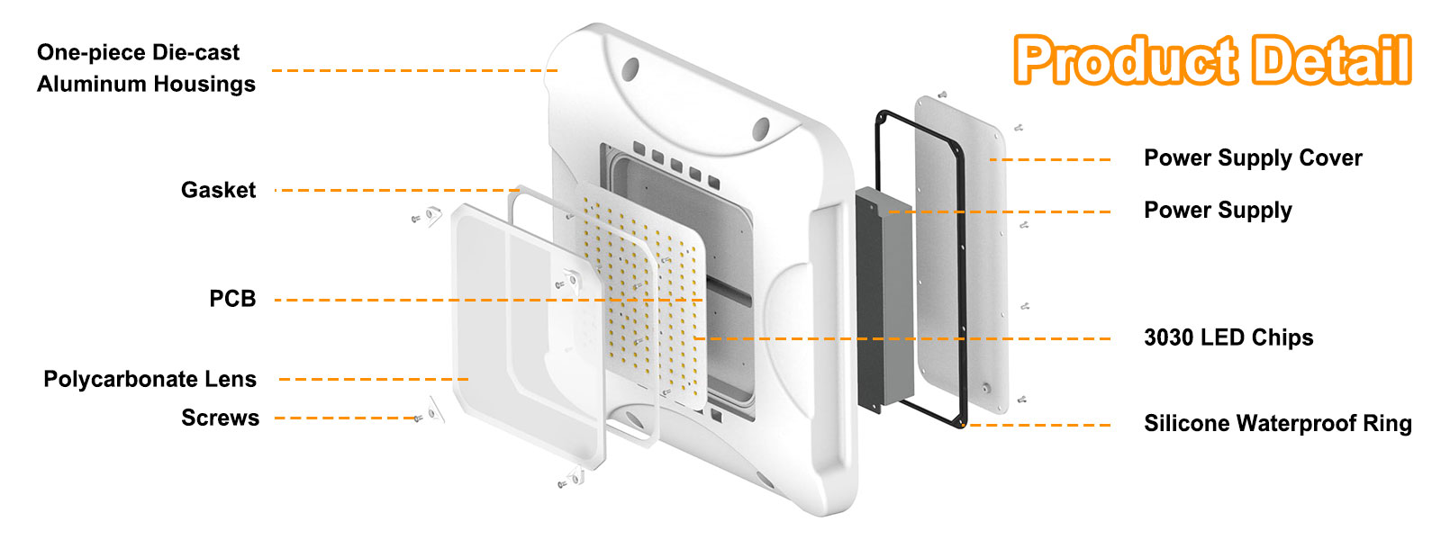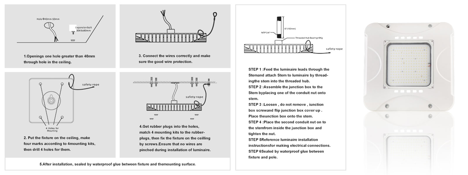 | Application | Gas station lighting, Petroleum canopies lighting, CNG fueling stations lighting, Low-medium bay general lighting |