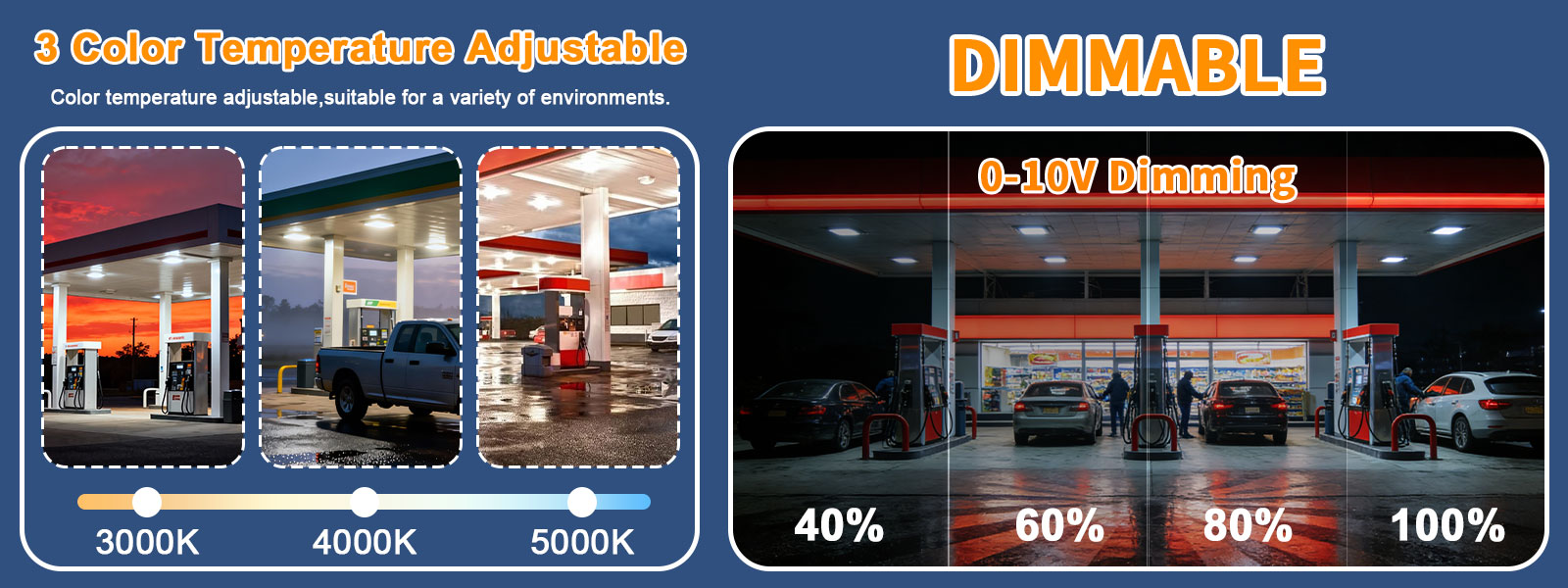 | Application | Gas station lighting, Petroleum canopies lighting, CNG fueling stations lighting, Low-medium bay general lighting |