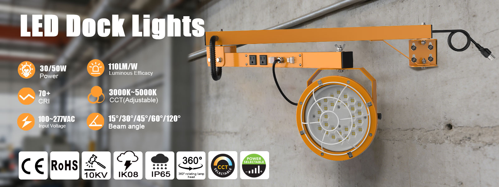 About LED Loading Dock light 30W 50W Wattage and CCT Adjustable Waterproof for Warehouse Loading Dock Equipment