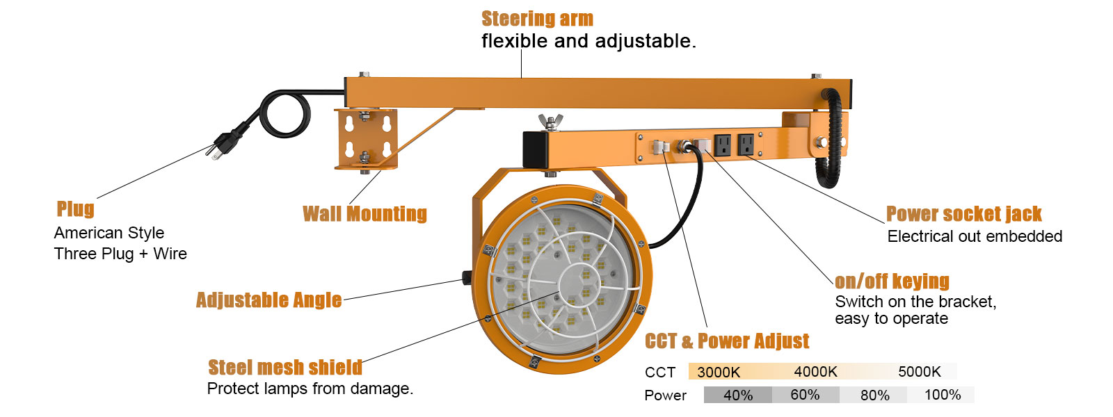 ✅Folding Arm Switch: Yesbulb loading door dock light’s switch is set on the folding arm socket. Not necessary or plug and unplug the light to switch the light cap, but can be operated directly on the folding arm switch.