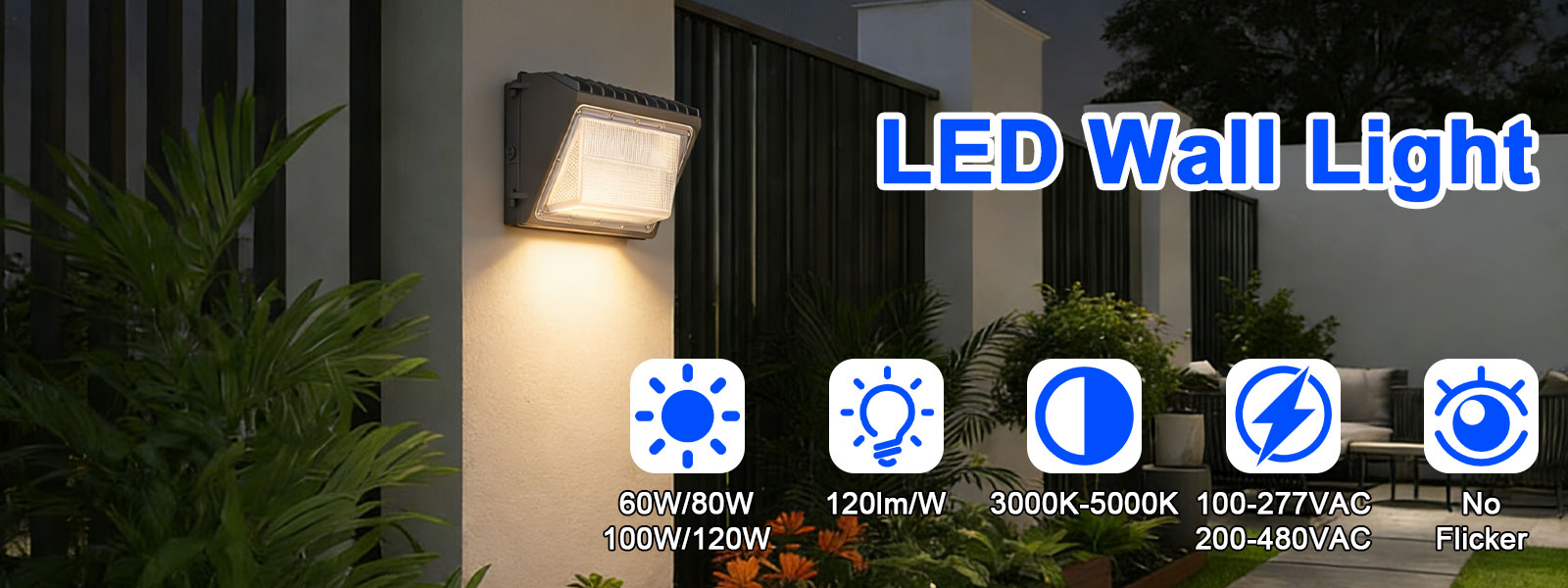 Outdoor LED Wall Pack Light Fixture 120W 5000K IP65, 12000 Lumens, 400W MH/HPS replacement, upgrade existing wall packs with ease, sealed die-casting profile for out applications. universal voltage AC100-277v 50/60Hz, using high quality 3030 chips, UL driver, dust-proof & IP65 waterproof.